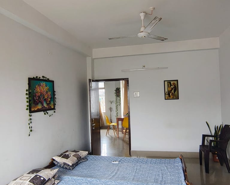 A quiet 1BHK homestay featuring 2 rooms for up to 6 guests, suitable for families and medical visitors.